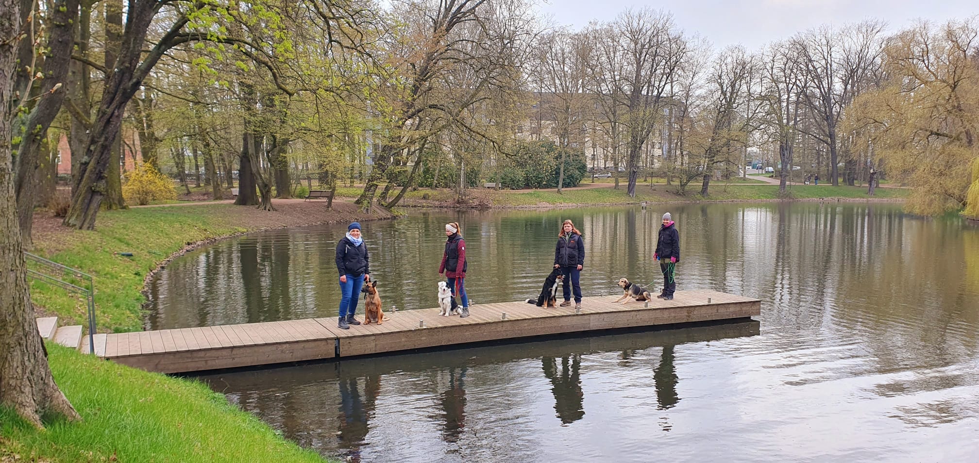 Begegnungen mit Hunden, Joggern, Fahrradfahrer, Passanten, Gerüche, Geräusche… entlang am Wildgehege… auf den schwimmenden Bootssteg…. bei all der Ablenkung drumherum: Anzeige, Detachieren & Ablage uvm.