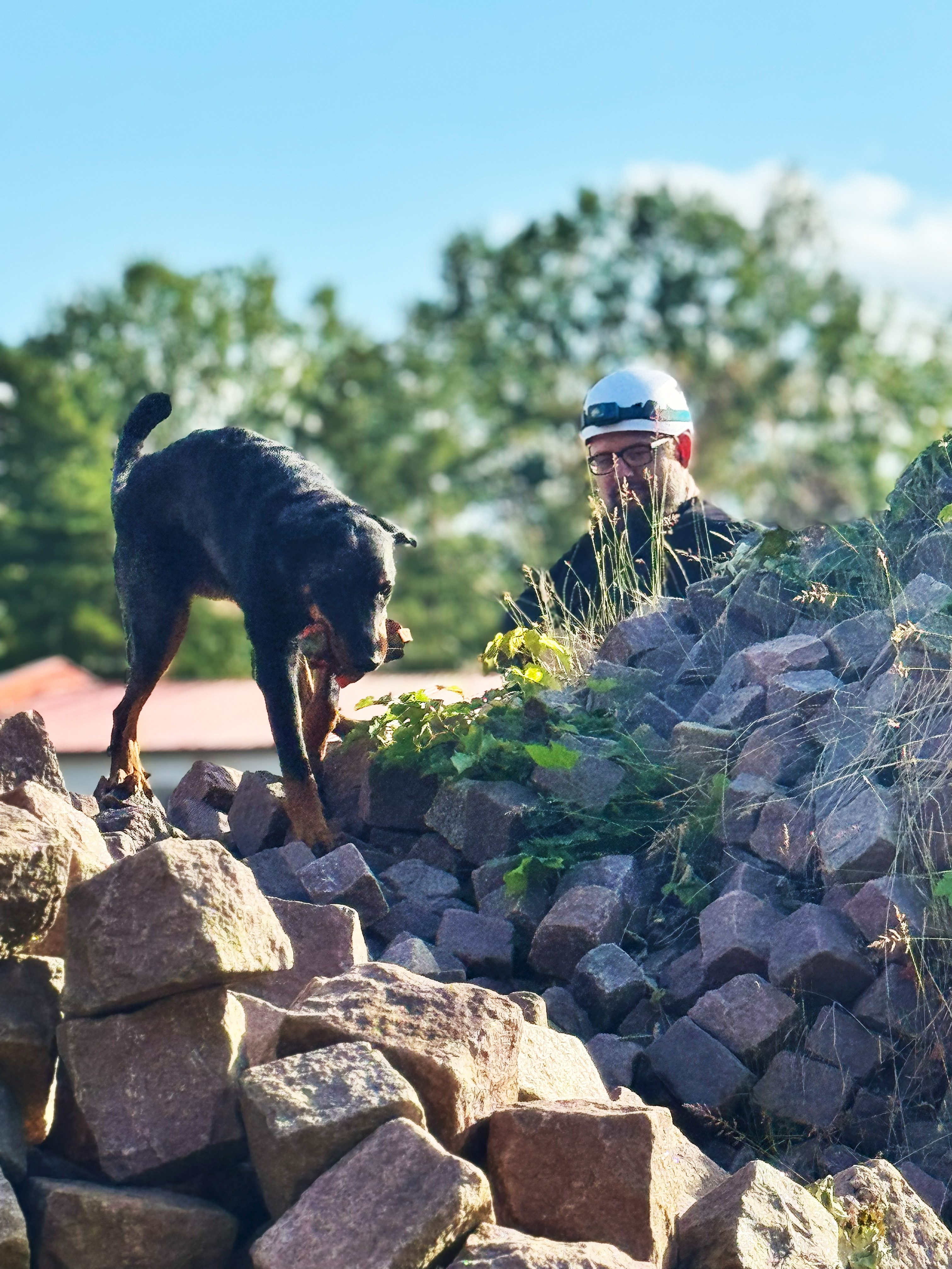 Auf so einem Bauhof können die Hunde ihre Geschicklichkeit auf unterschiedlichsten Untergründen trainieren und Witterungen in den zahlreichen Versteckmöglichkeiten ausarbeiten lernen.
