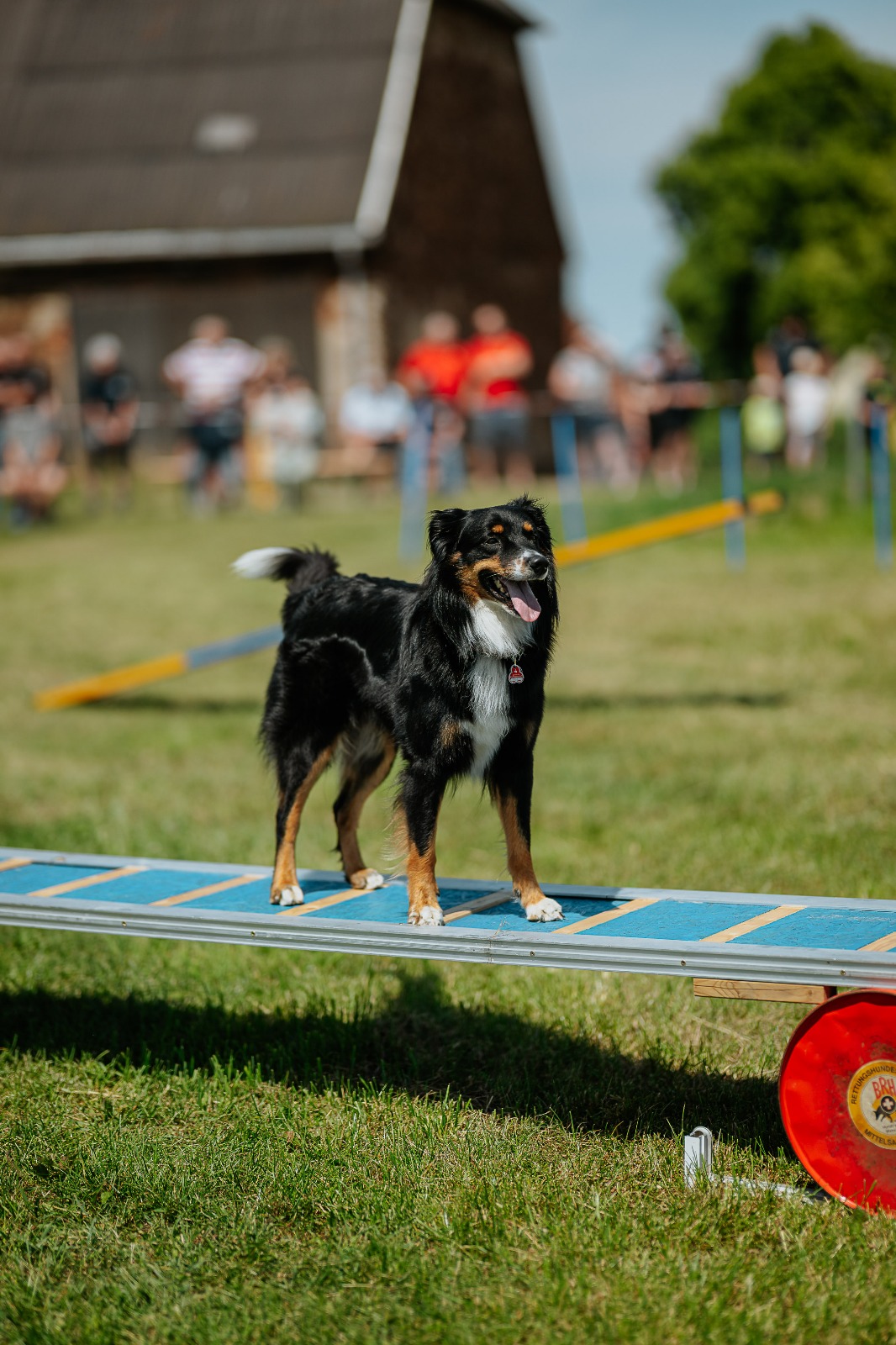 aber gemeint ist das sichere Überqueren einer beweglichen Fassbrücke, einer Wippe und ein 4 m langes schräges Brett sowie das Kriechen durch einen 4 m langen Tunnel, das Begehen von unangenehmen Material und die Lenkbarkeit, in 30 Meter Entfernung auf zwei markante Anlaufpunkte.