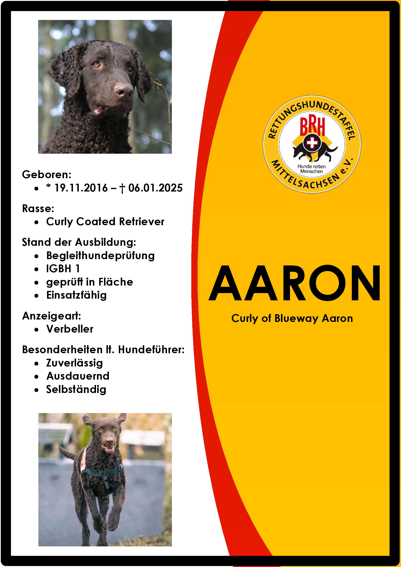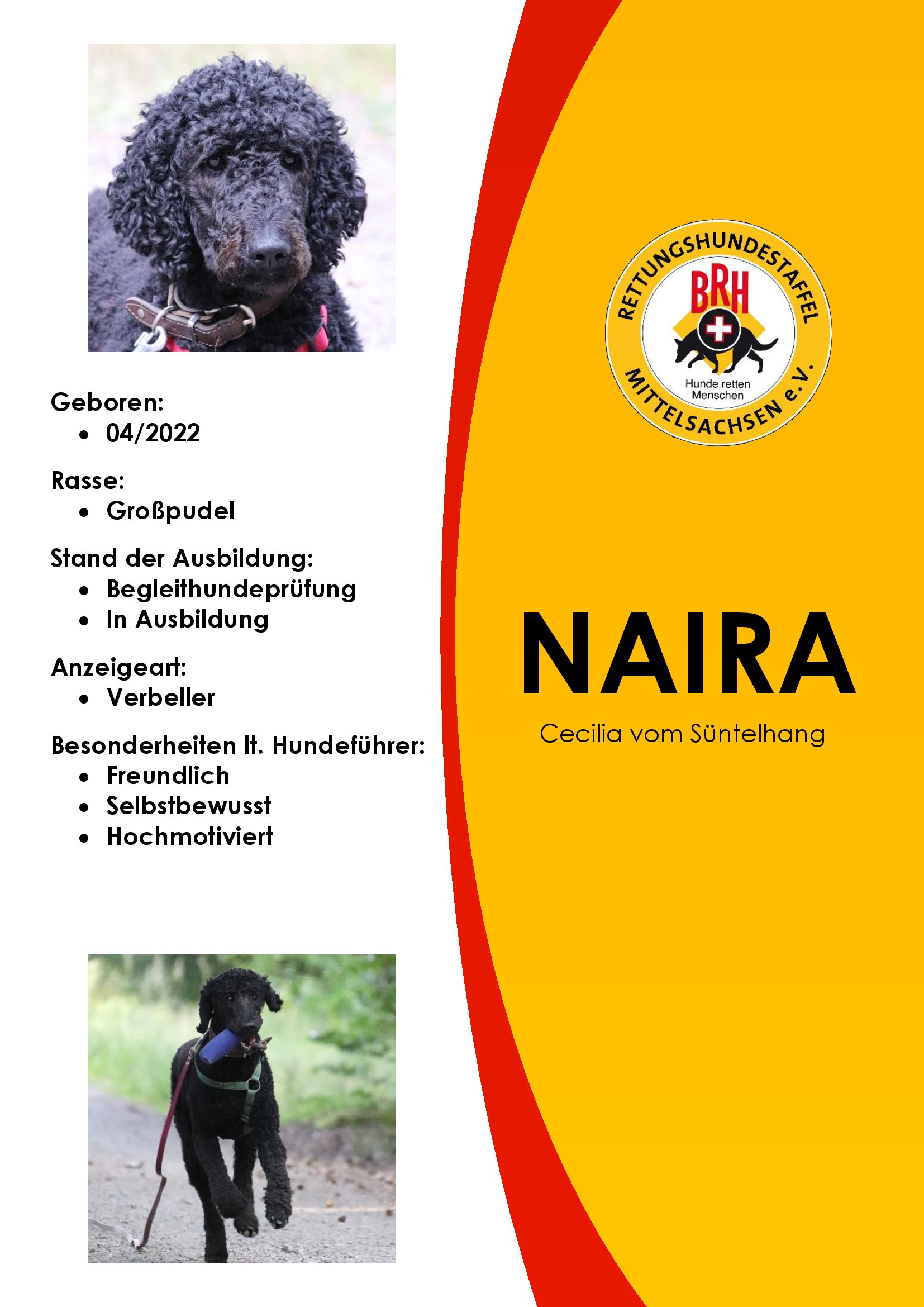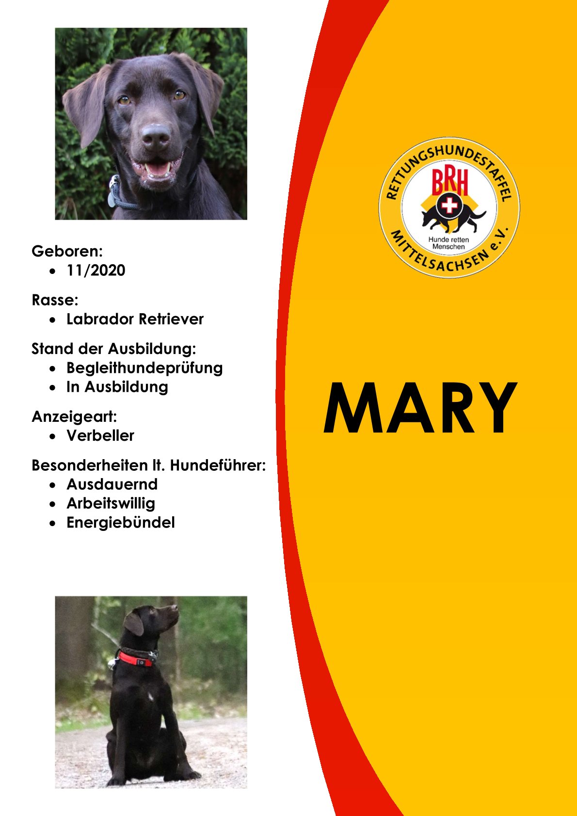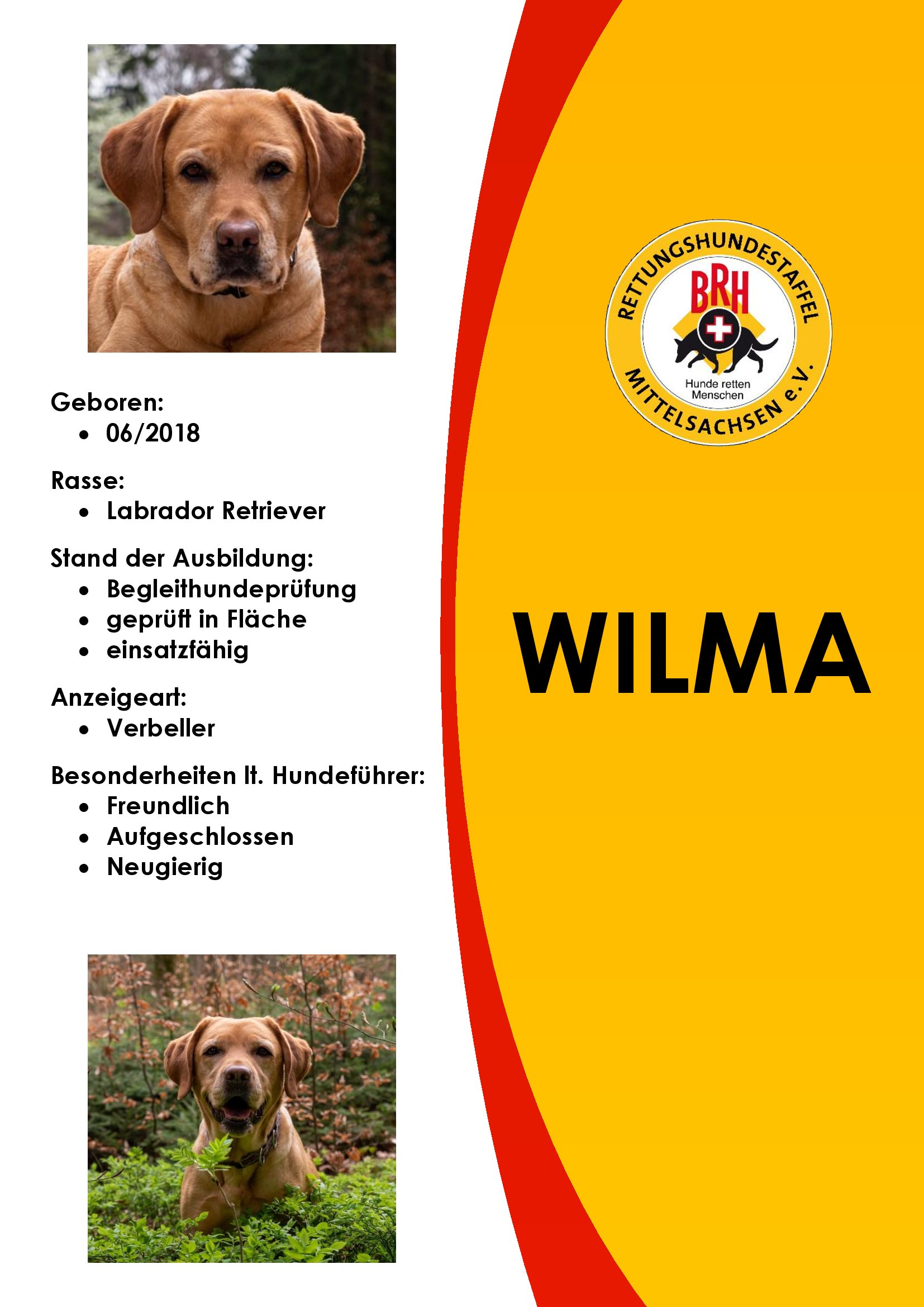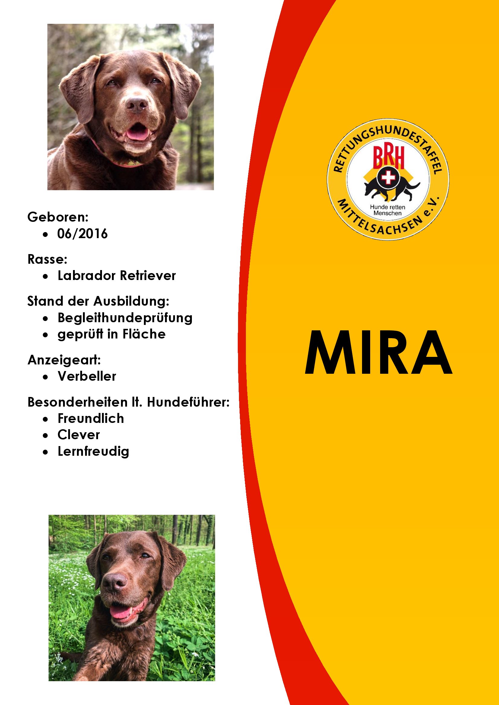 Der BRH ist der älteste, und mit 91 Staffeln auch der größte Verband zur Ausbildung von Rettungshunden in Deutschland. Im BRH werden Rettungshunde in den Sparten Flächensuche, Trümmersuche und Mantrailing ausgebildet und unter einheitlichen Richtlinien geprüft. Rettungskräfte des BRH sind sowohl an nationalen als auch internationalen Einsätzen beteiligt. Mit der Angliederung als BRH Rettungshundestaffel Mittelsachsen e.V. werden unsere Teams unter diesen einheitlichen Anforderungen geprüft.